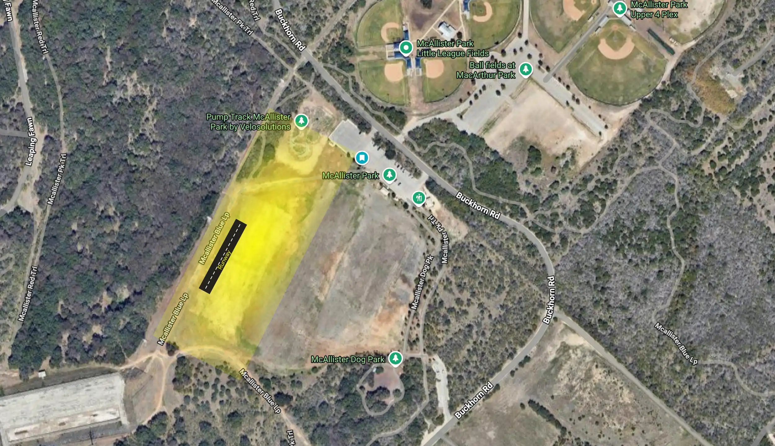 - 👍 Runway surface already exists. Existing park road is perfect.