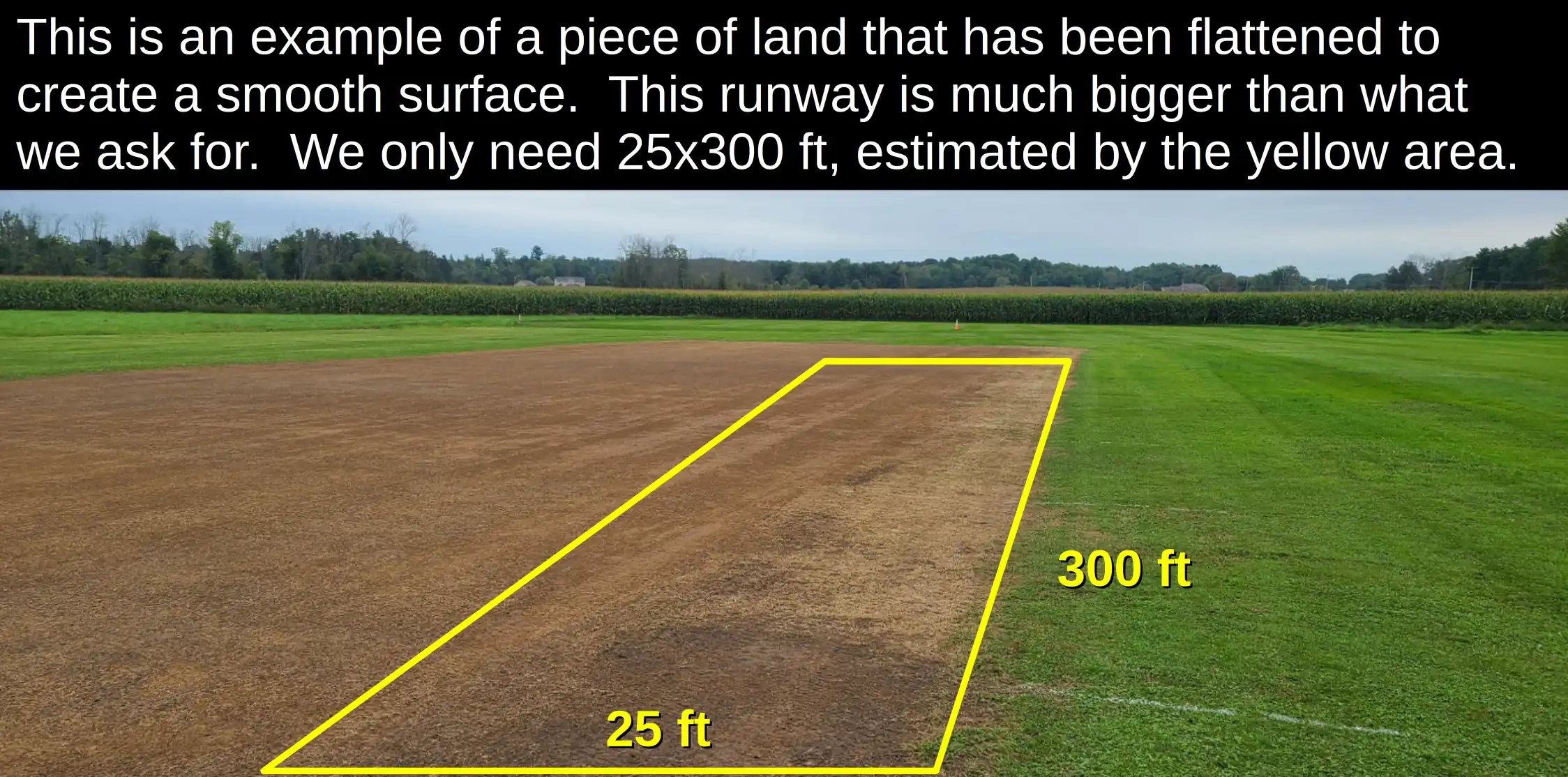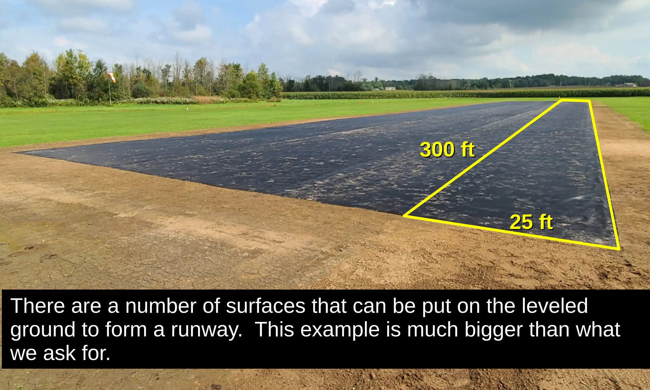 - 🚧 A 300×25 ft. runway surface is needed.